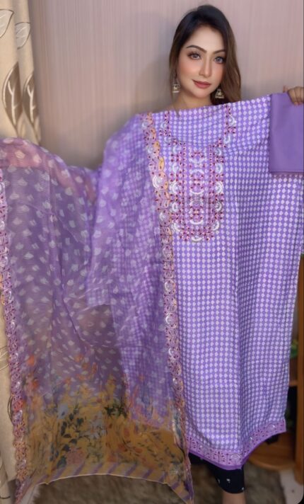 • Pakistani inspired pure cotton three-piece Pakistani inspired pure cotton three-piece ৳ 1,650